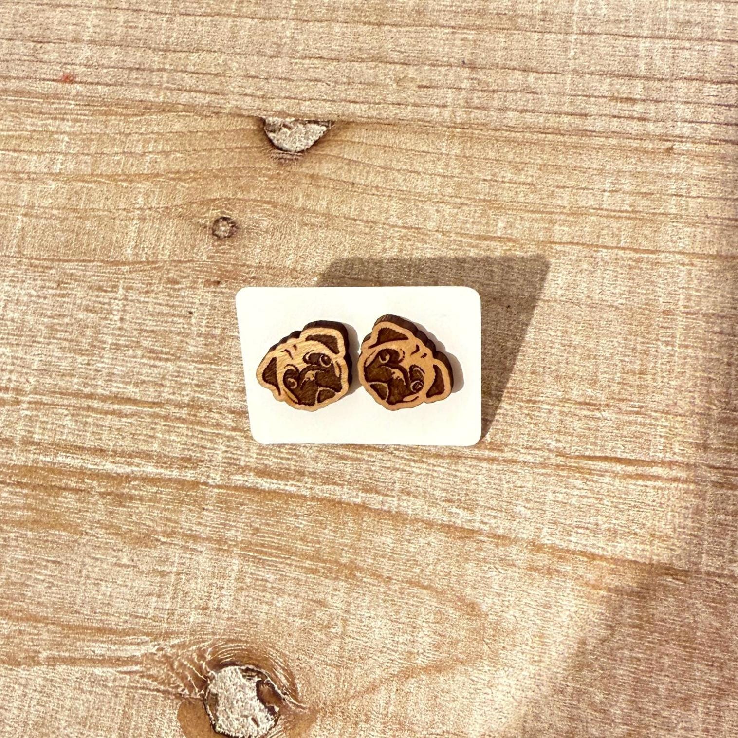 Handmade Pug Gift Set: Laser Cut Earrings & Straw Toppers