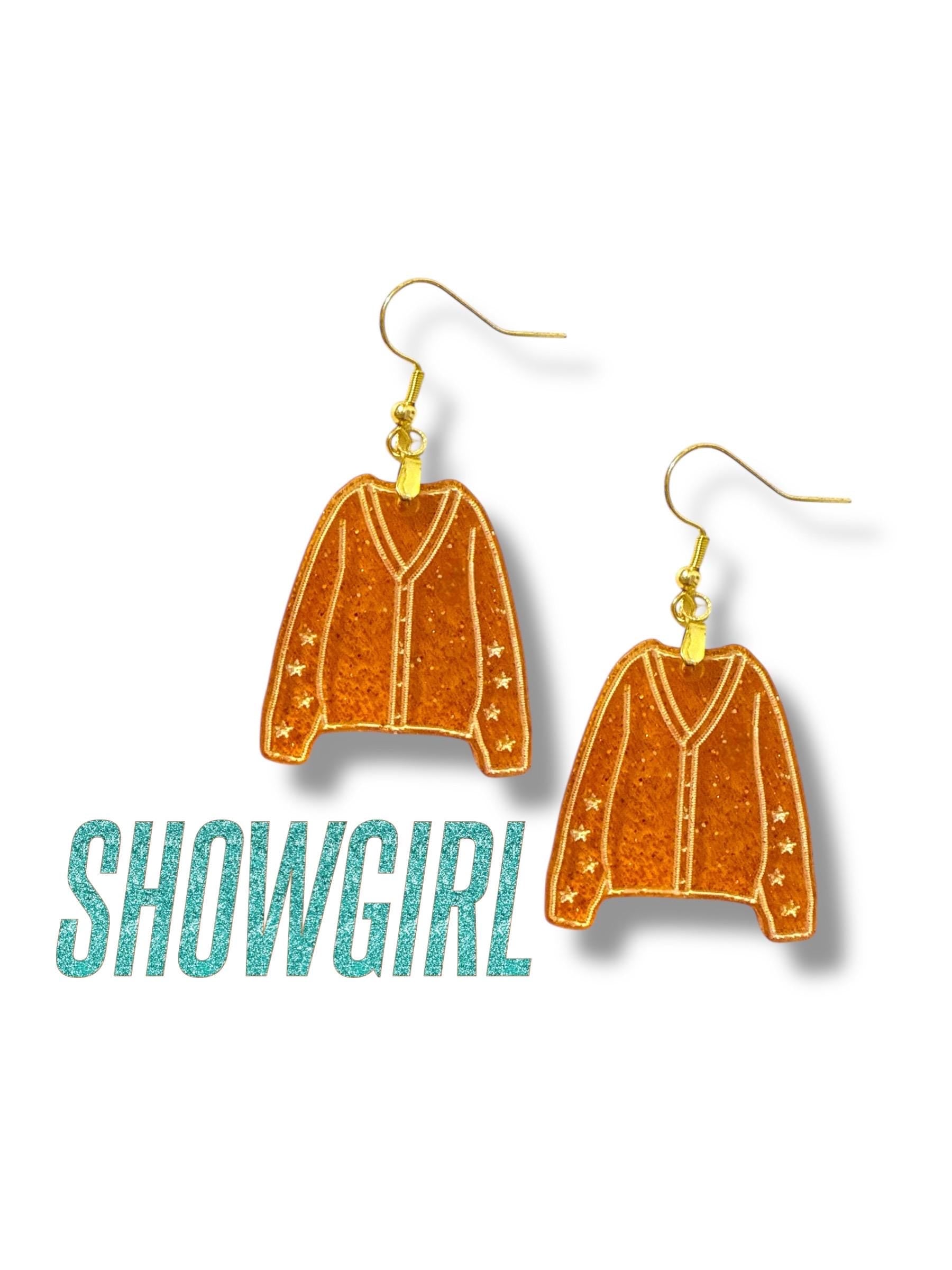 Showgirl Cardigan Earrings Orange Glitter Album Release Party! Glitter Sweater Earrings